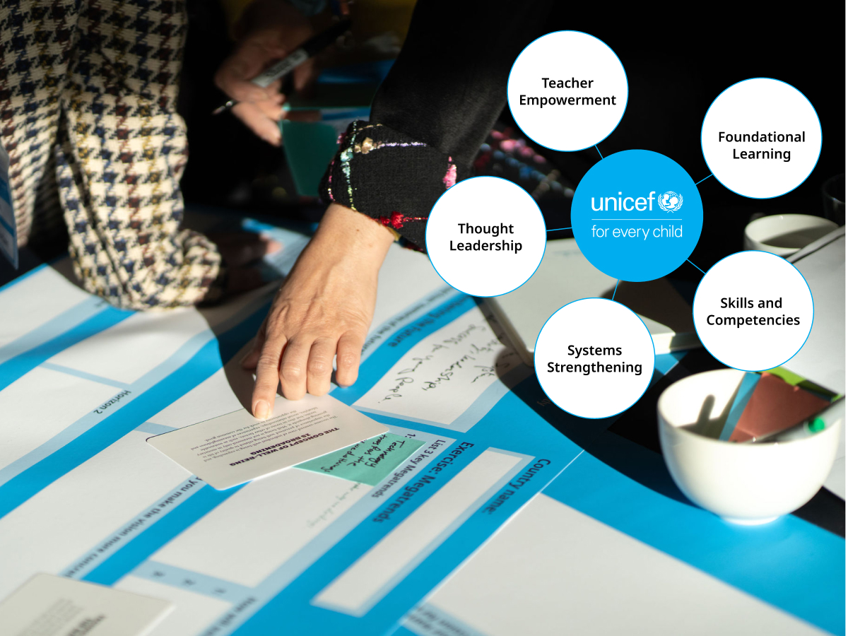 Approach: As Strategic Design Lead for UNICEF's Global Learning Innovation Hub, I integrate design methods across a portfolio of flagship digital education initiatives. This means shaping how programmes are framed, how they land with partners, and how country teams build local ownership of innovation in education. The work spans facilitation, visual strategy, and framework creation that connect complex ideas to actionable outcomes.